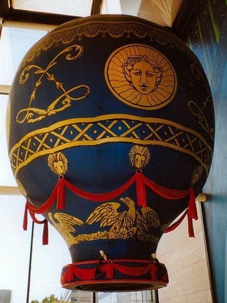 Vanuit een enorme oven op de grond werd de blauw met goud gekleurde ballon door de hitte tot in al zijn majesteit opgeblazen: 21 meter hoog en 14 meter breed. De twee aristocraten namen voor een juiste gewichtsverdeling tegenover elkaar in de "korf" plaats.