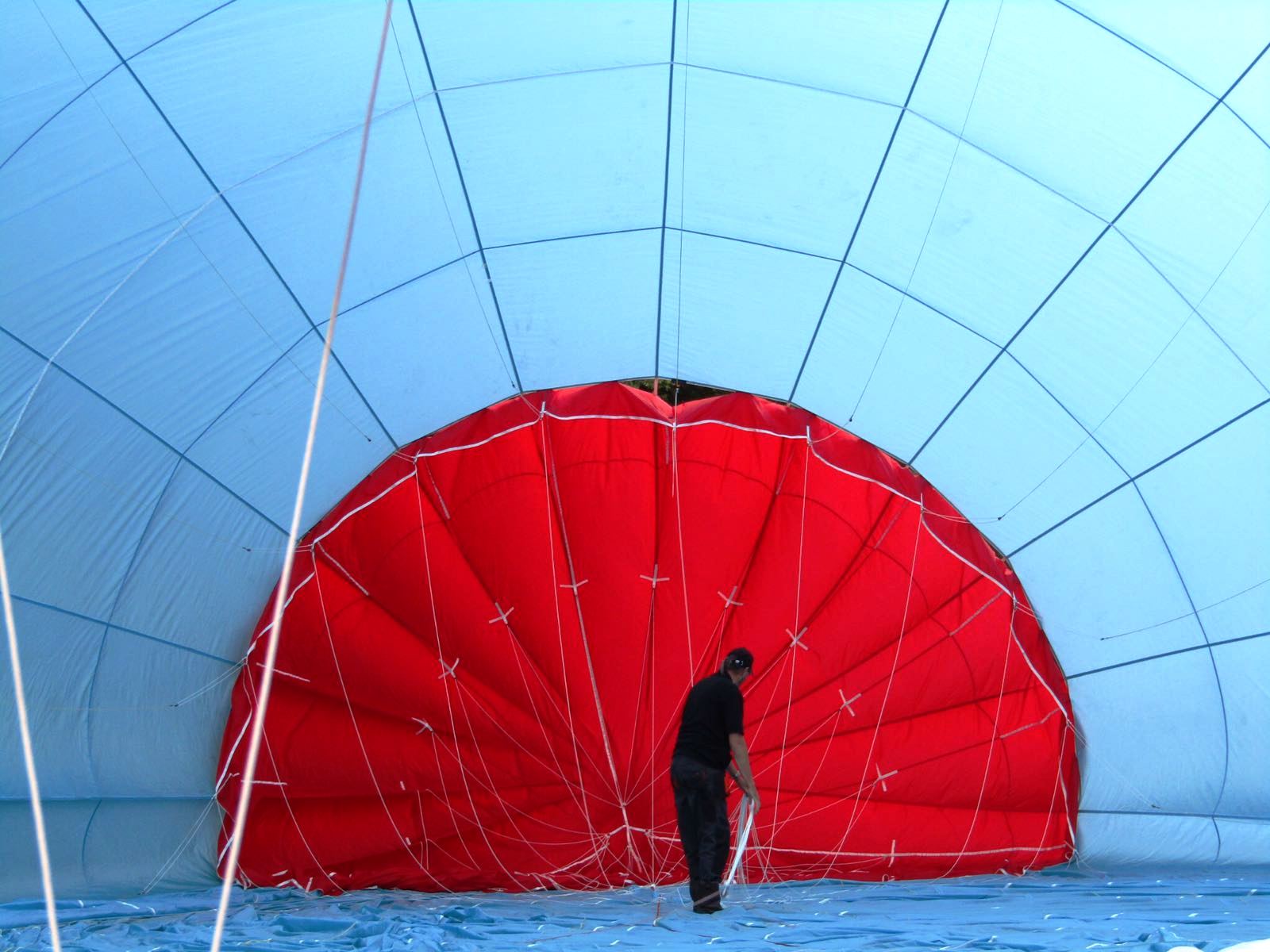 De korf was gehangen aan een net over de bovenste helft van de ballon. Het gewicht van de korf met inhoud werd daardoor gelijkmatig verdeeld over het bovenstuk van de ballon.