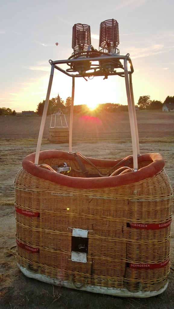 De ballon wordt eerst vol geblazen met koude lucht d.m.v. een ventilator en daarna worden de branders ontstoken om de koude lucht te verwarmen. Een grote vlam gooit zijn hitte de ballon in, waardoor deze omhoog komt. De piloot zal zijn checklist afwerken en daarna kunnen de passagiers op aanwijzing van de piloot in de mand klimmen. Als alles in orde is en iedereen er gereed voor is, zal de ballon gaan opstijgen. Dat is meestal het meest sensationele moment, de opstijging en een geheel nieuwe wereld die voor u open gaat: boven alles verheven, en wat is het klein daar beneden. Hoogtevrees maakt vreemd genoeg geen enkele kans, dit omdat er geen contact meer is met de aarde. De oranjerode bol van de ondergaande zon geeft de heiige velden en sloten een onwerkelijke gloed.